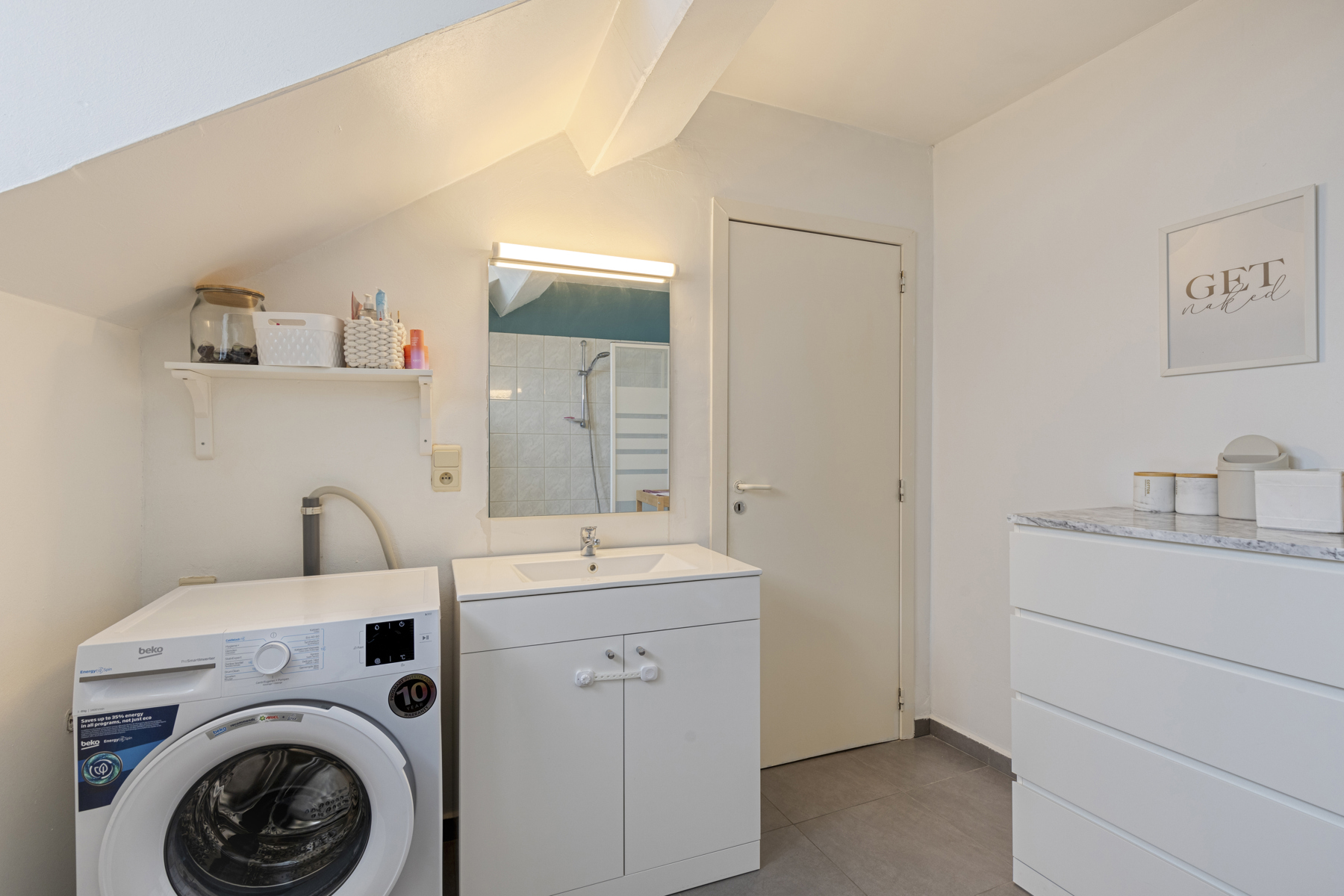 Op de begane grond beschik je over een eigen, afgesloten berging. Ideaal voor wie extra opbergruimte kan gebruiken voor fietsen, voorraad of seizoensgebonden spullen. Deze praktische troef zorgt ervoor dat de duplex zelf volledig vrij blijft van overbodige spullen.