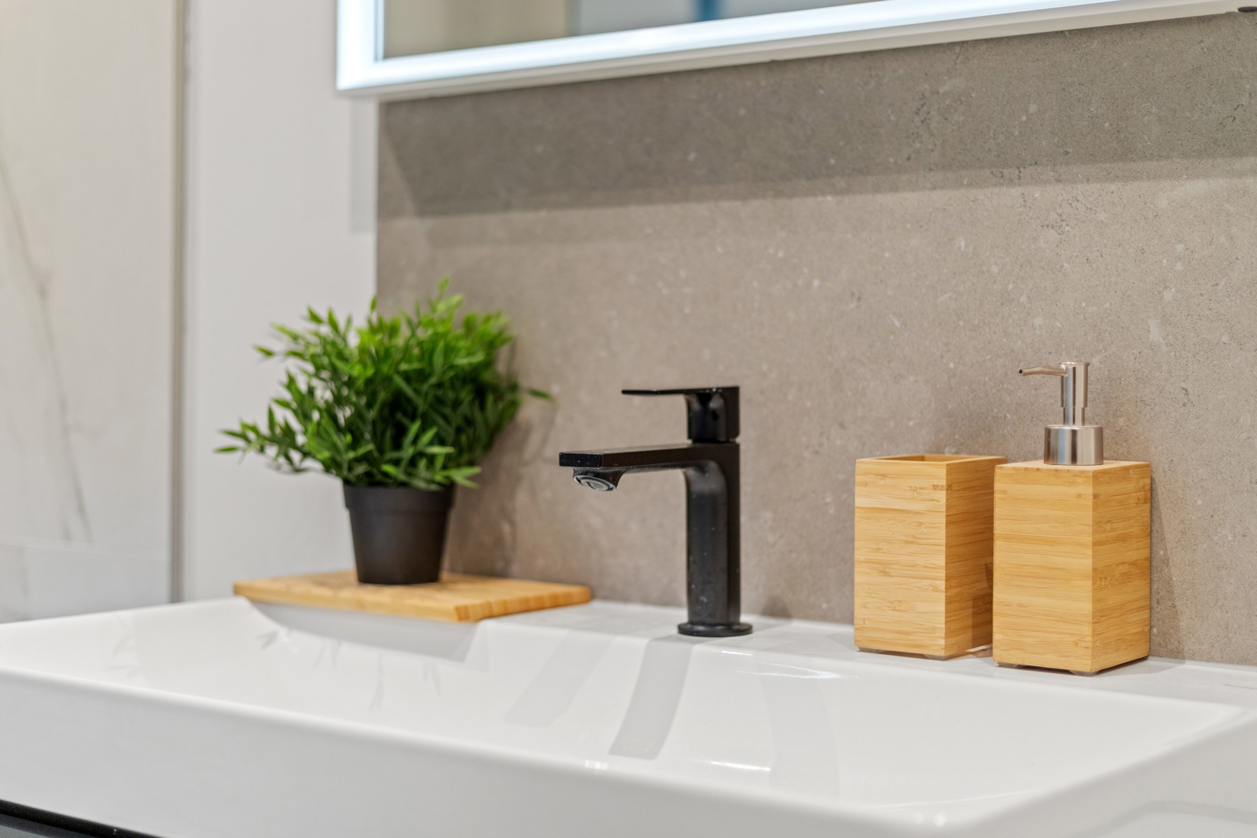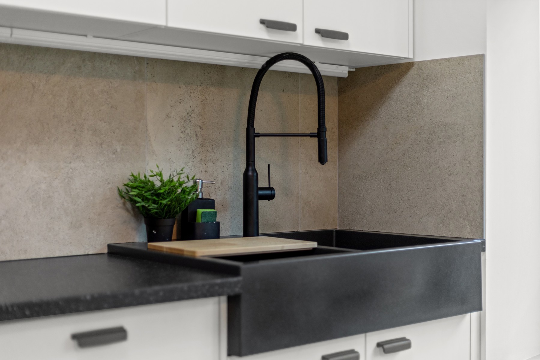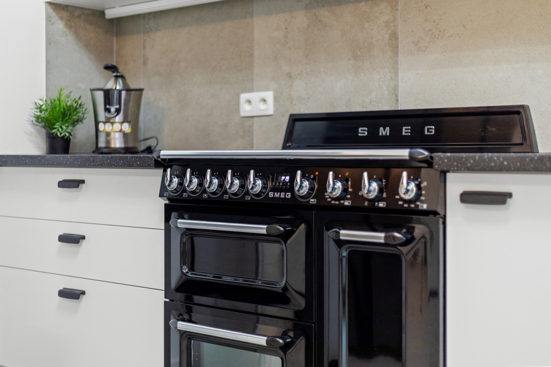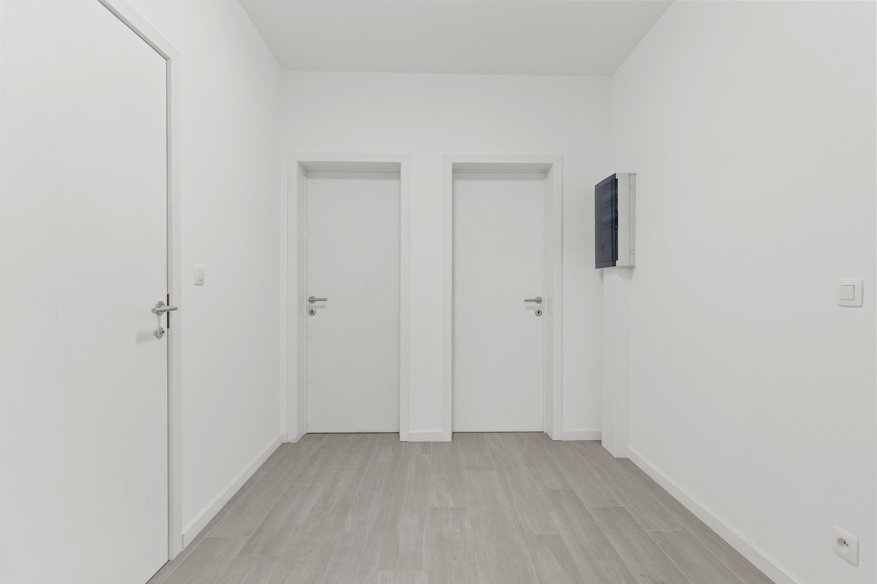 De indeling van de appartementen: ruime inkomhal, leefruimte en open keuken met SMEG-kookvuur en Amerikaanse koelkast. 2 ruime slaapkamers en badkamer met inloop-regen-douche, wastafel en hangtoilet + voorzieningen voor wasmachine/droogkast.