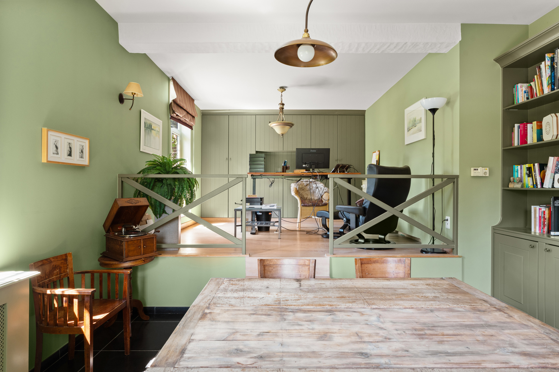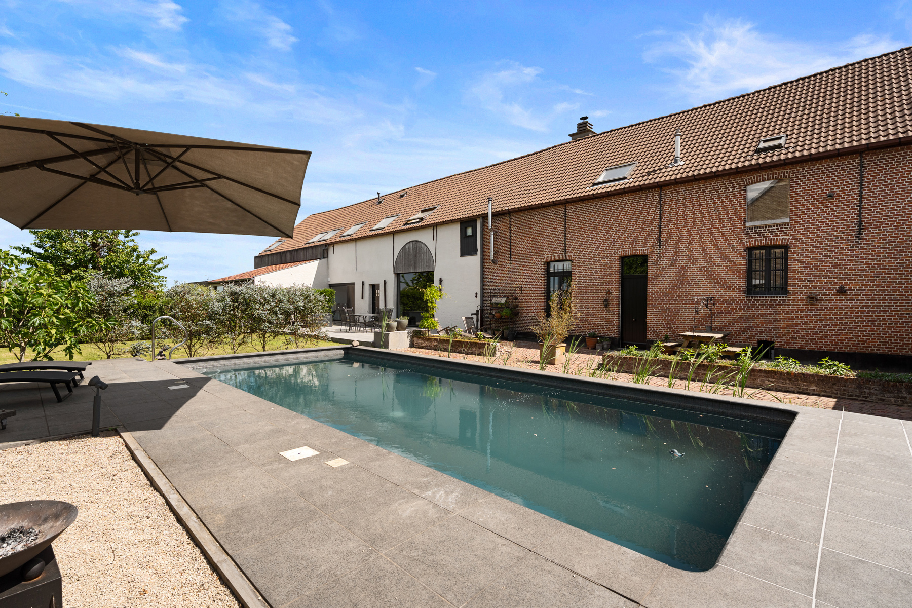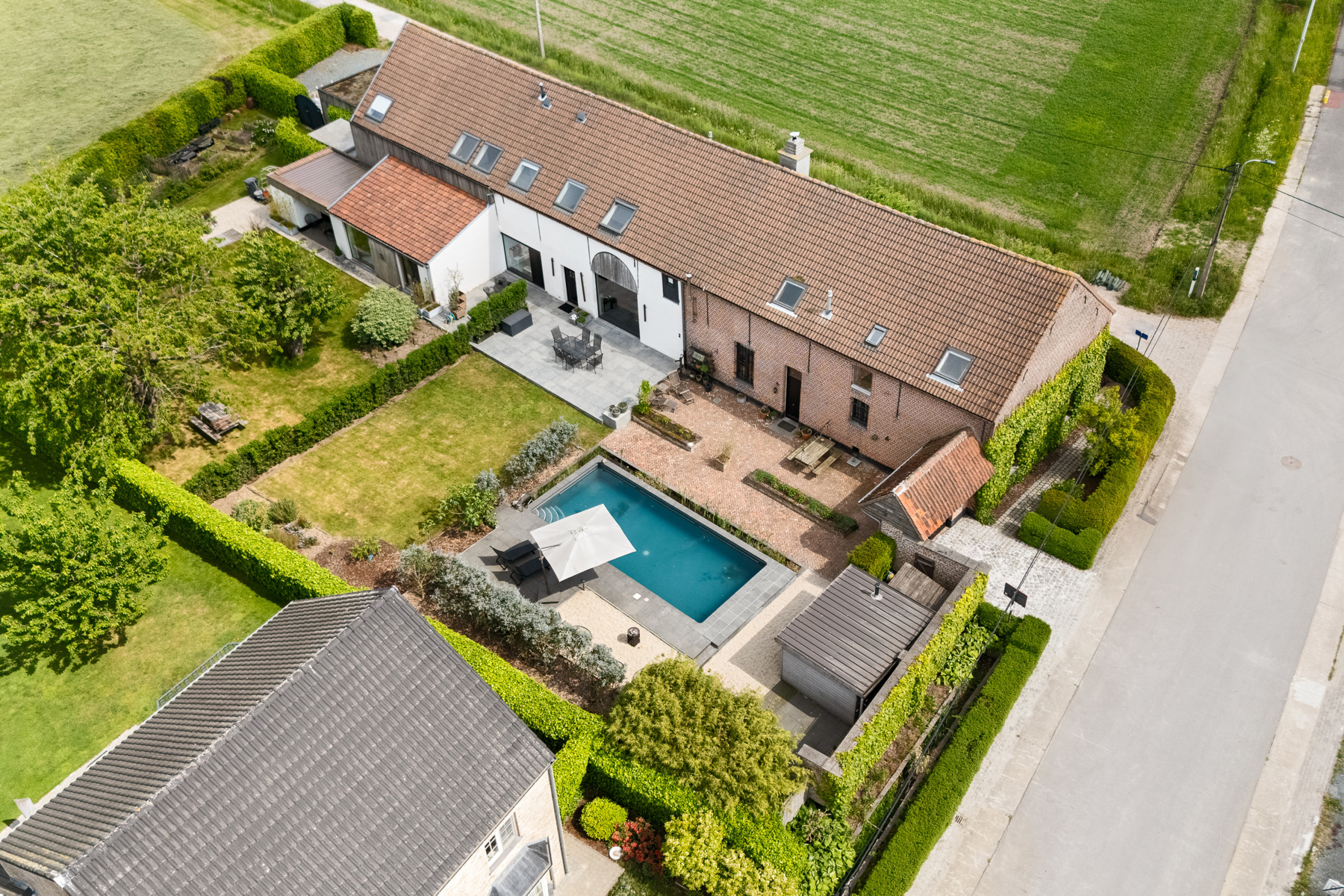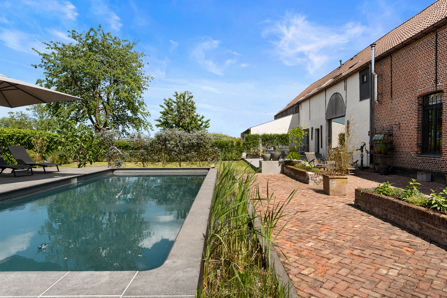 Deze voormalige woonstal ademt karakter dankzij authentieke elementen zoals natuursteen, parketvloeren, zichtbare baksteen en een imposant keukenplafond. De keuken met Boretti-gasfornuis en industriële details vormt het kloppende hart van de woning. Riante leefruimtes baden in het licht en worden in de winter gezellig verwarmd door twee pelletkachels. De inrichting in stijlvolle “Flamand”-stijl is tot in de puntjes uitgewerkt. Verder beschikt de woning over een royale bureauruimte van 27,8 m² en een tweede werkplek van 12 m². De verdieping biedt verfijnde slaapkamers, een master met ensuite en dressing, en een tweede badkamer met zwembadzicht.