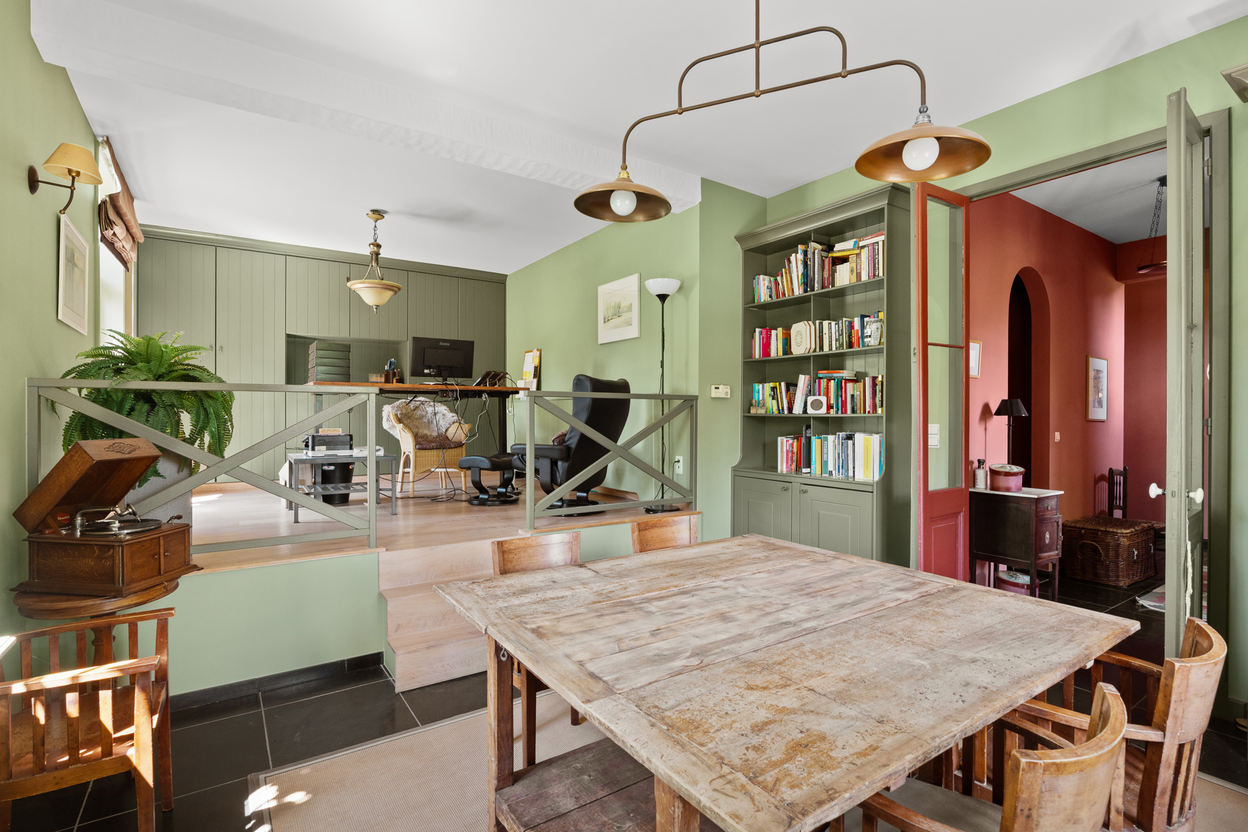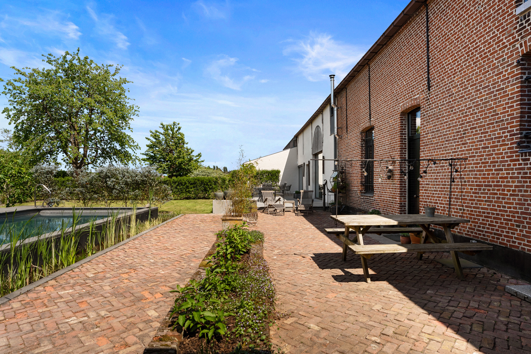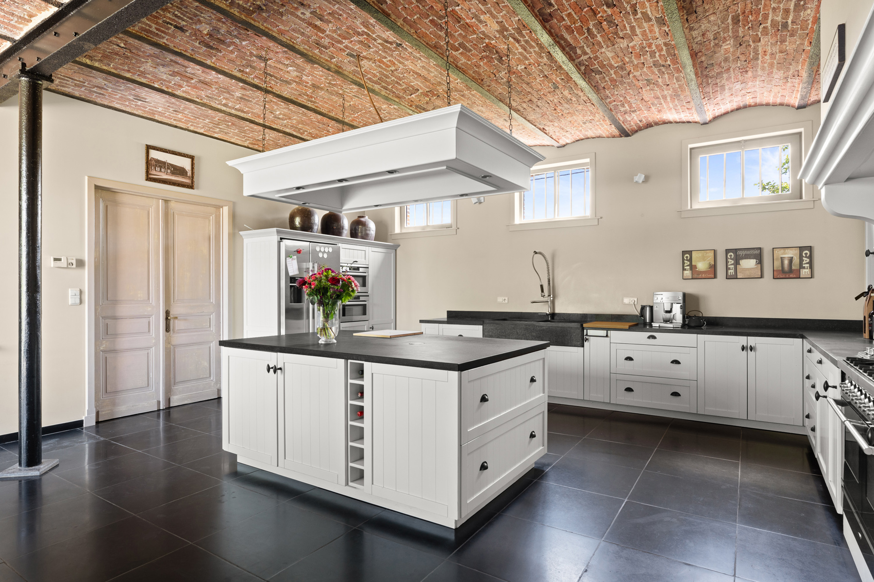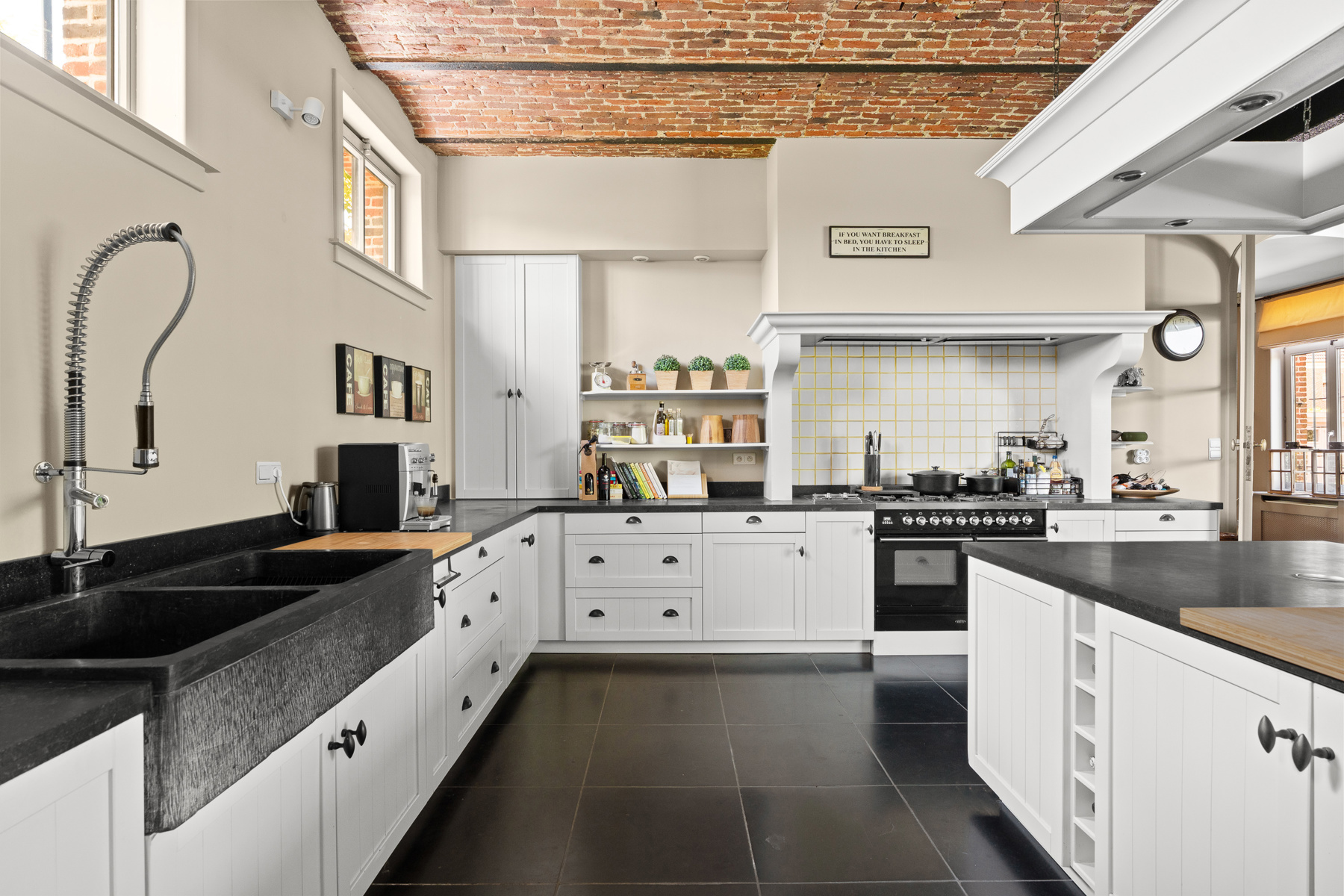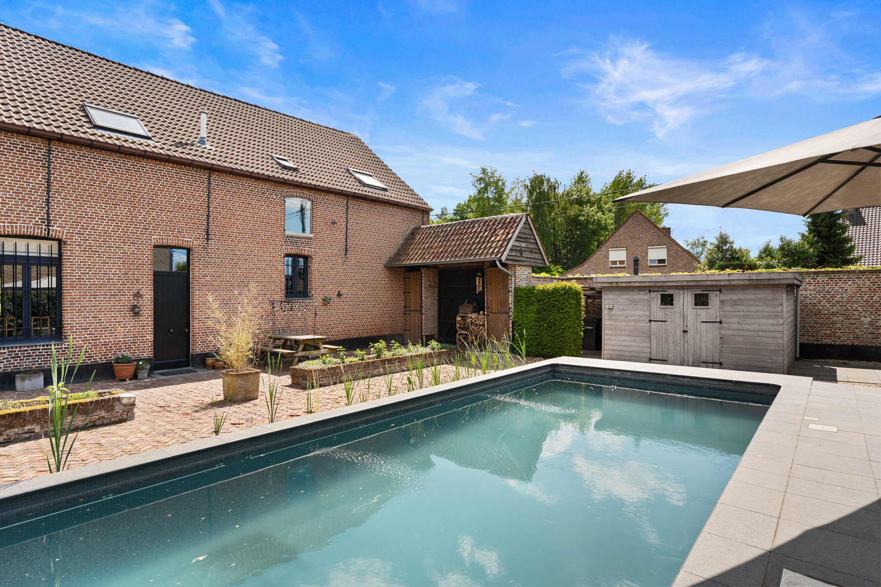 Deze voormalige woonstal ademt karakter dankzij authentieke elementen zoals natuursteen, parketvloeren, zichtbare baksteen en een imposant keukenplafond. De keuken met Boretti-gasfornuis en industriële details vormt het kloppende hart van de woning. Riante leefruimtes baden in het licht en worden in de winter gezellig verwarmd door twee pelletkachels. De inrichting in stijlvolle “Flamand”-stijl is tot in de puntjes uitgewerkt. Verder beschikt de woning over een royale bureauruimte van 27,8 m² en een tweede werkplek van 12 m². De verdieping biedt verfijnde slaapkamers, een master met ensuite en dressing, en een tweede badkamer met zwembadzicht.