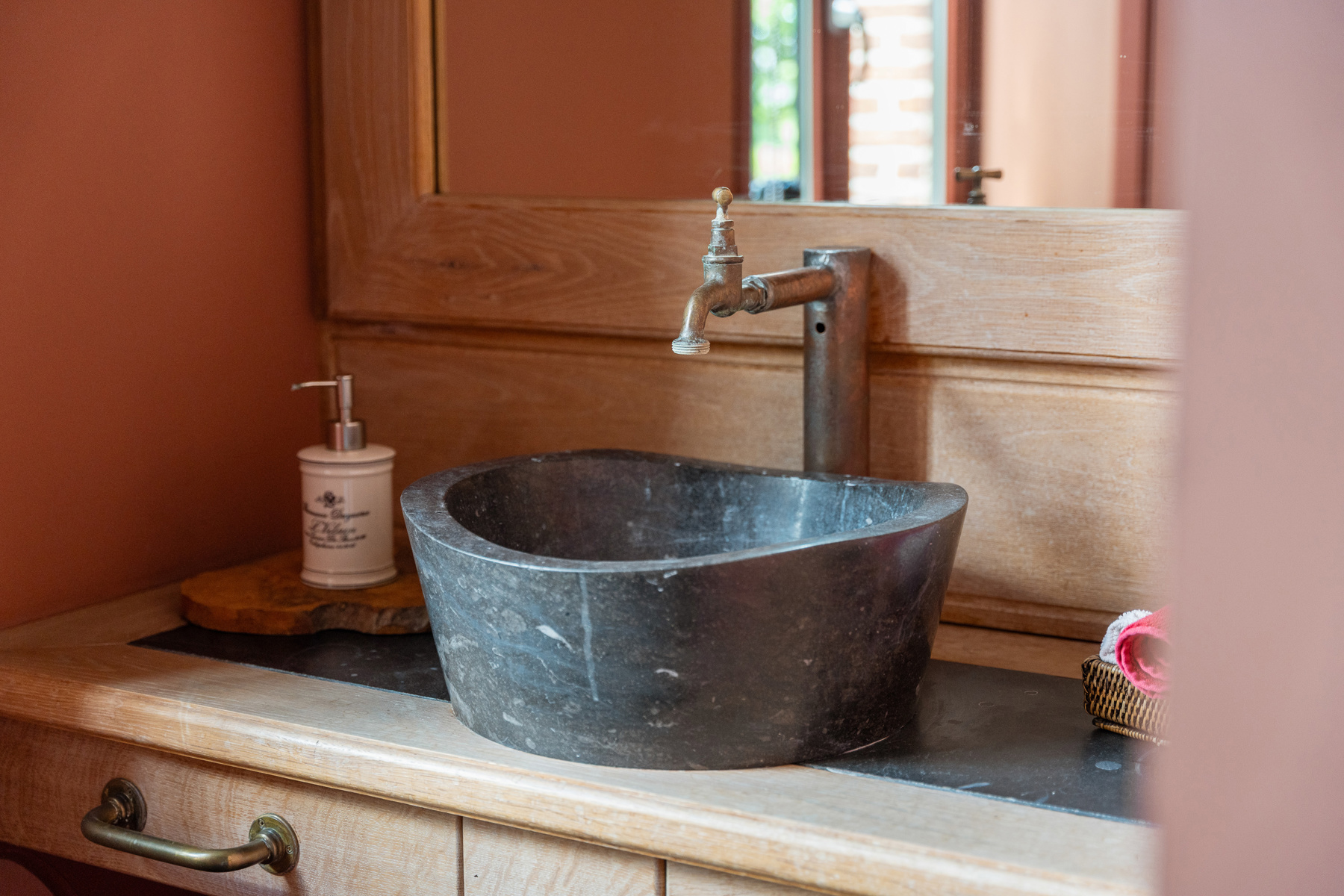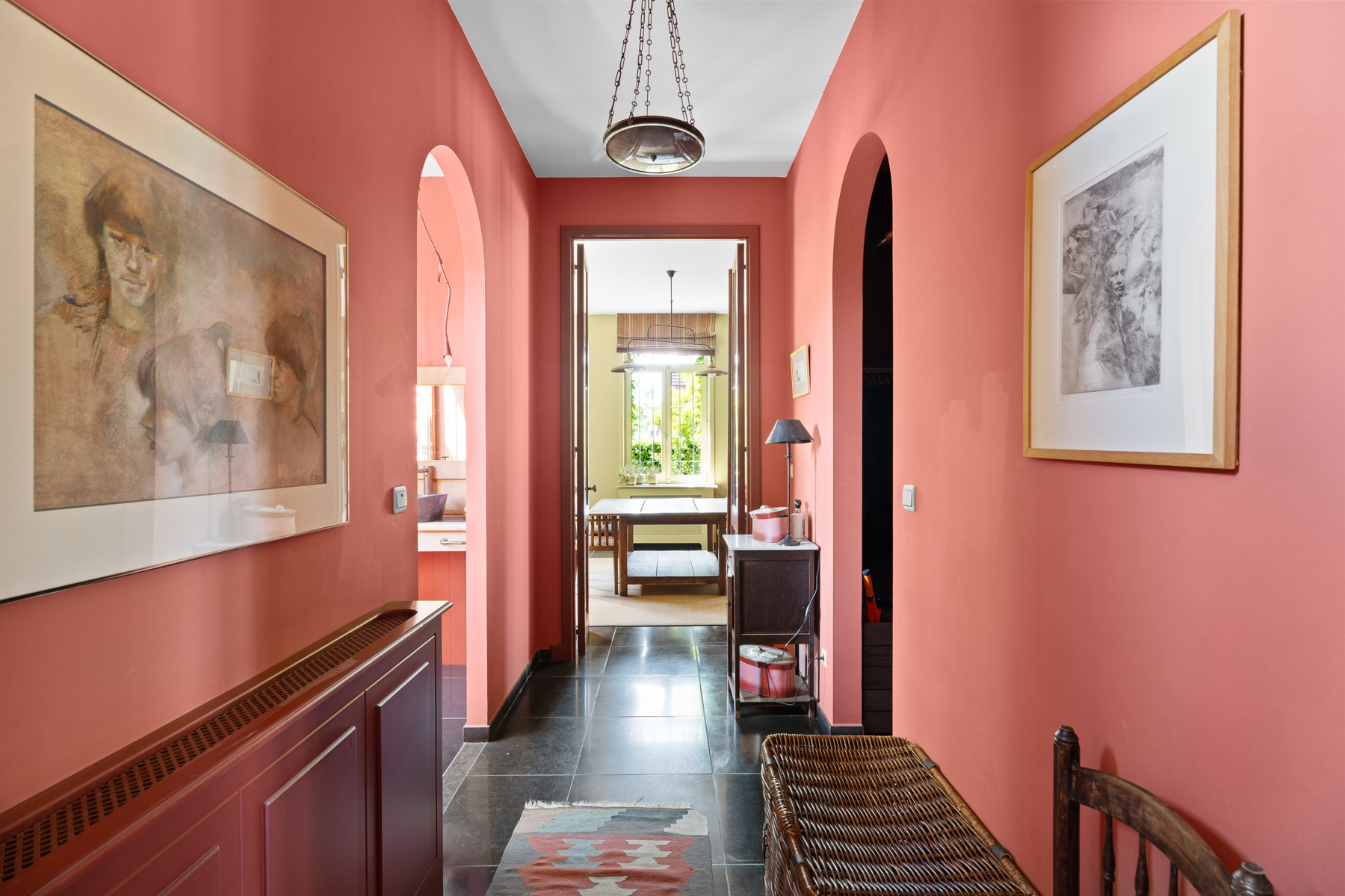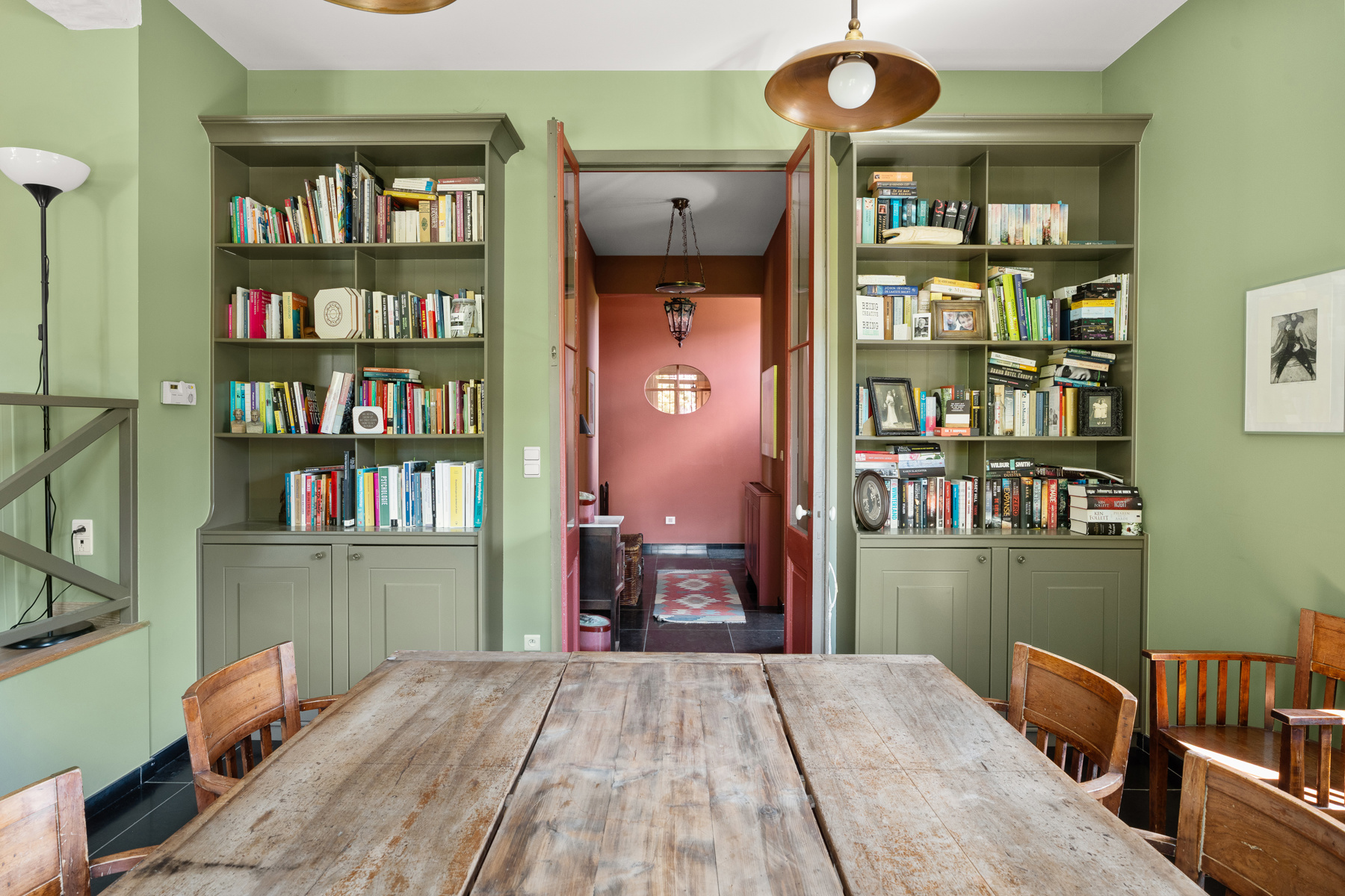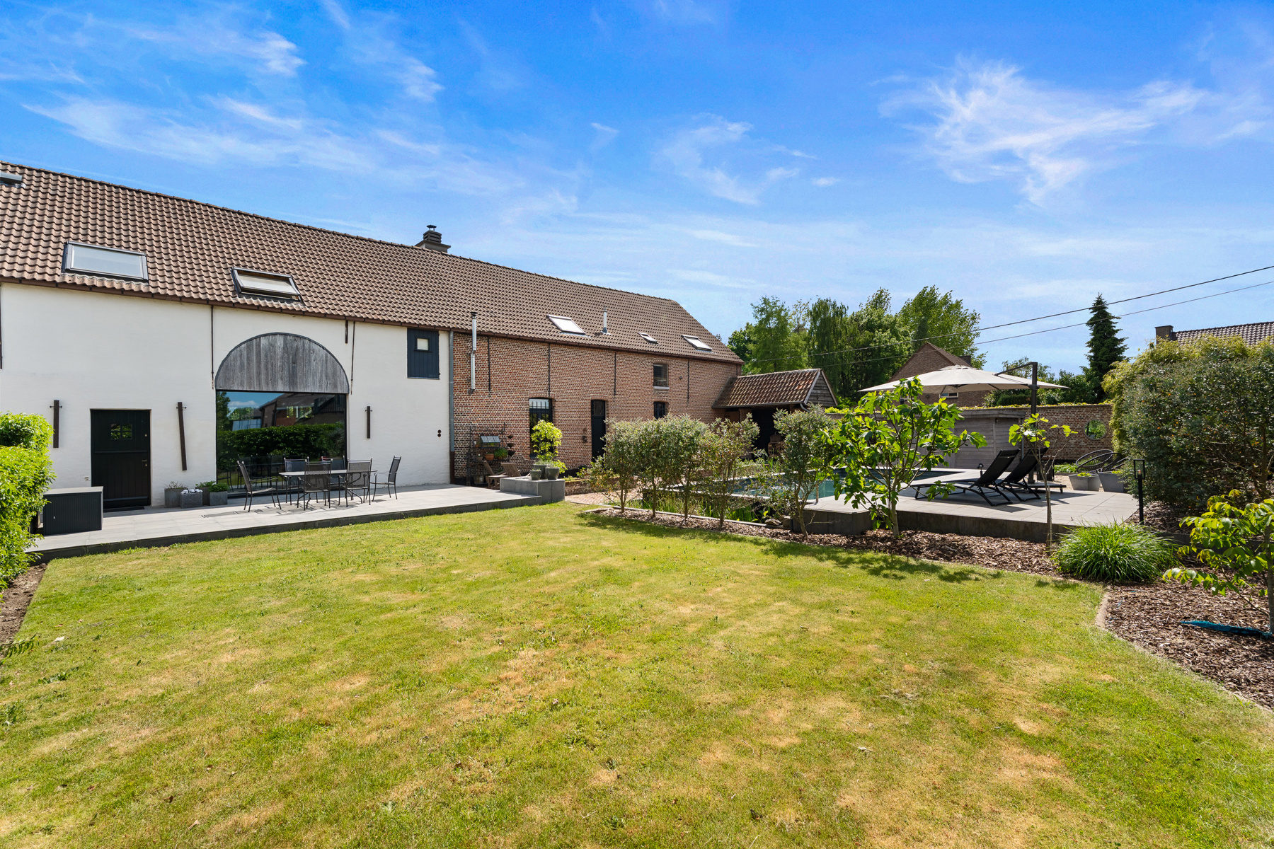 Deze voormalige woonstal ademt karakter dankzij authentieke elementen zoals natuursteen, parketvloeren, zichtbare baksteen en een imposant keukenplafond. De keuken met Boretti-gasfornuis en industriële details vormt het kloppende hart van de woning. Riante leefruimtes baden in het licht en worden in de winter gezellig verwarmd door twee pelletkachels. De inrichting in stijlvolle “Flamand”-stijl is tot in de puntjes uitgewerkt. Verder beschikt de woning over een royale bureauruimte van 27,8 m² en een tweede werkplek van 12 m². De verdieping biedt verfijnde slaapkamers, een master met ensuite en dressing, en een tweede badkamer met zwembadzicht.
