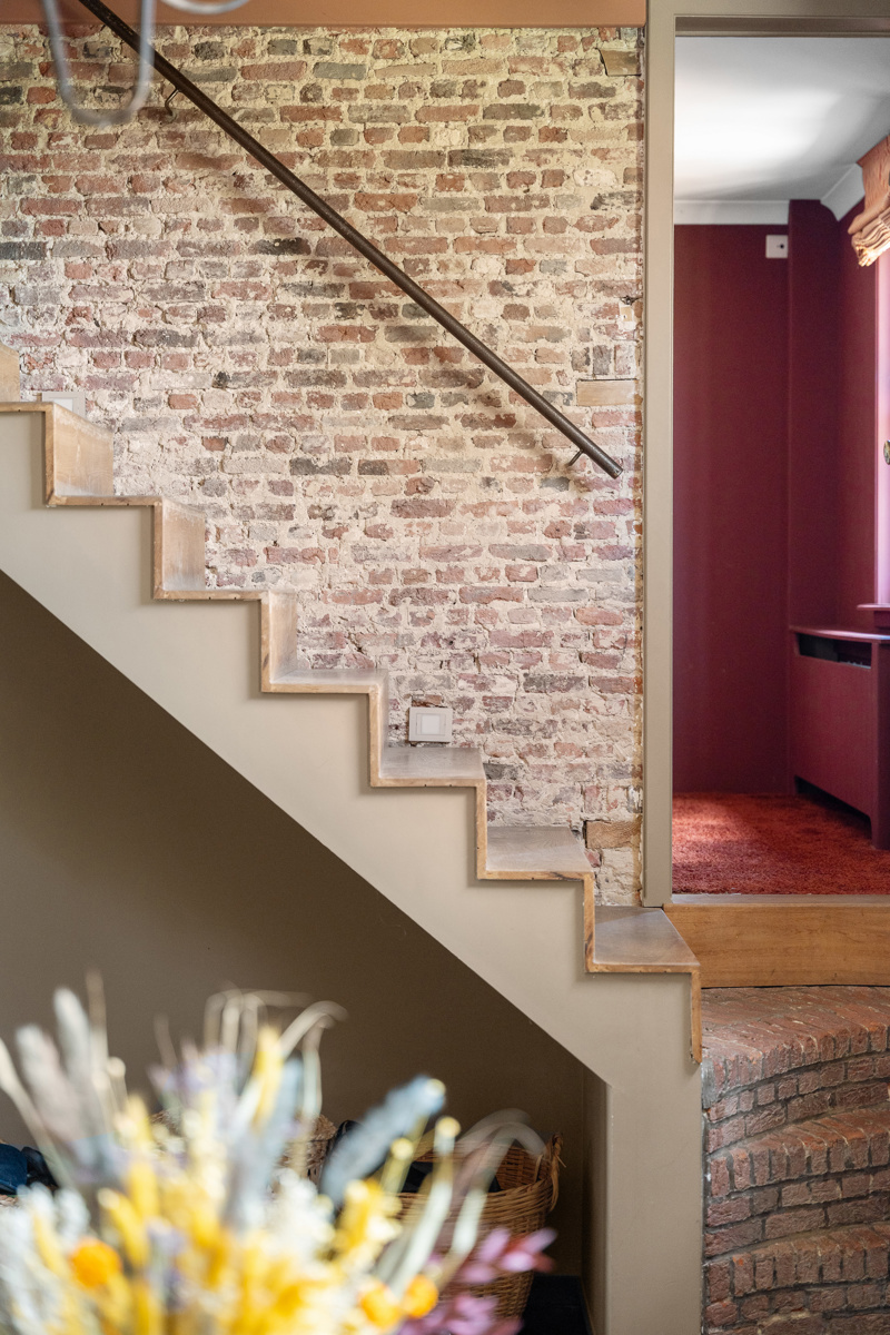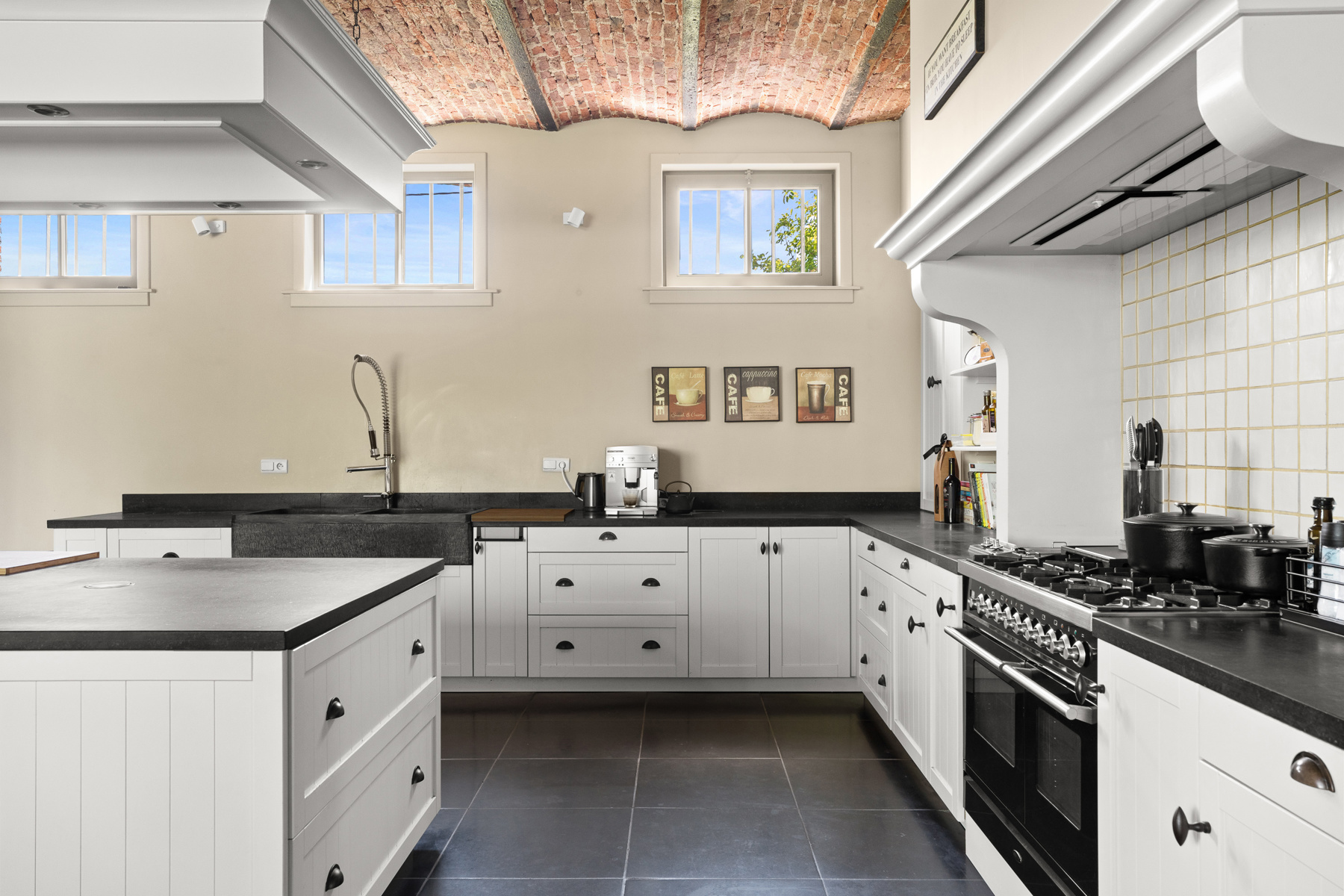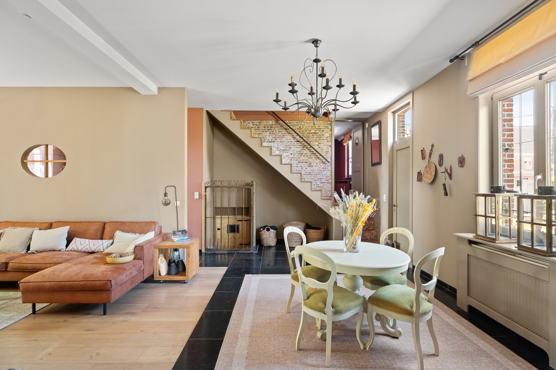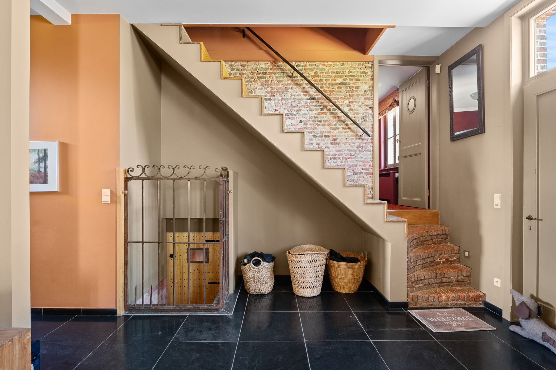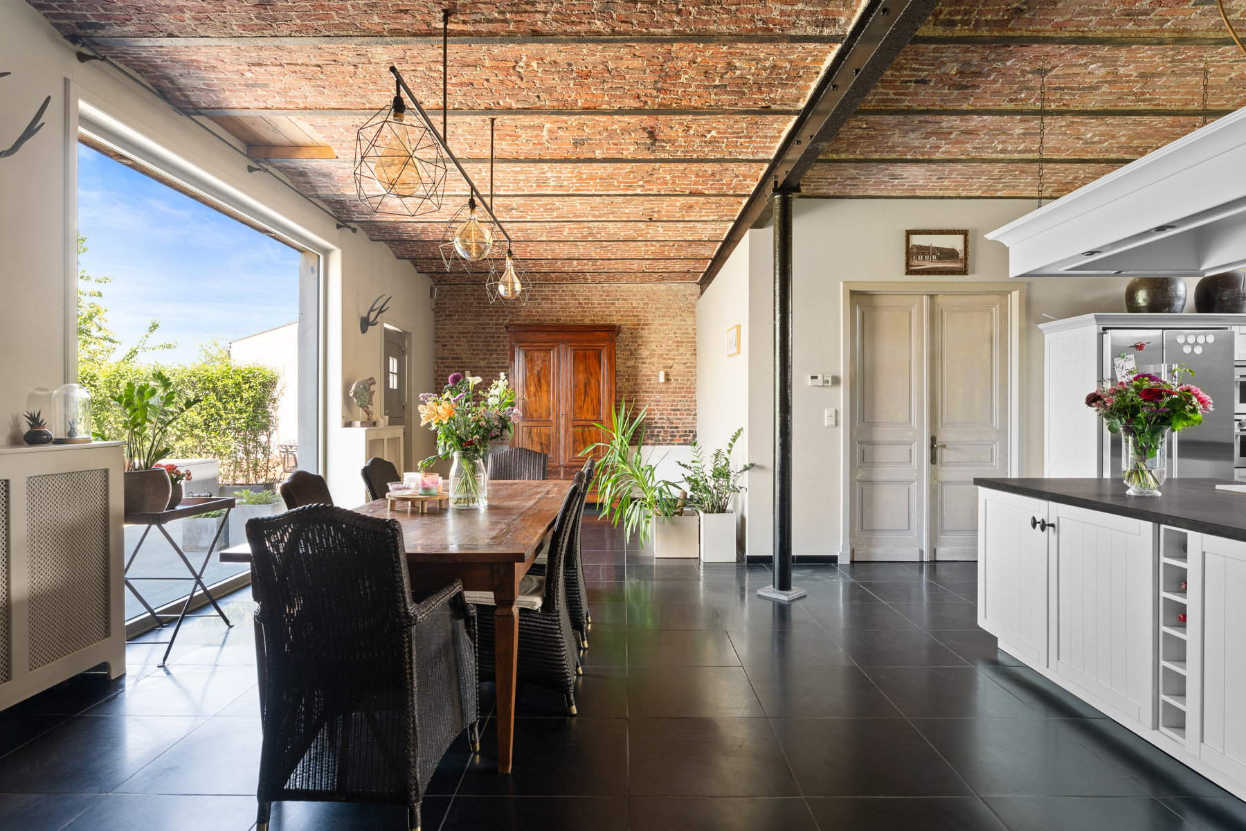 Deze voormalige woonstal uit 1918 werd in 2007 met oog voor detail en duurzaamheid gerenoveerd. Authentieke elementen zoals natuursteen, zichtbare baksteen, parket en een magnifiek keukenplafond werden gecombineerd met moderne luxe. De keuken met industriële toets en Boretti-gasfornuis vormt het hart van de woning.