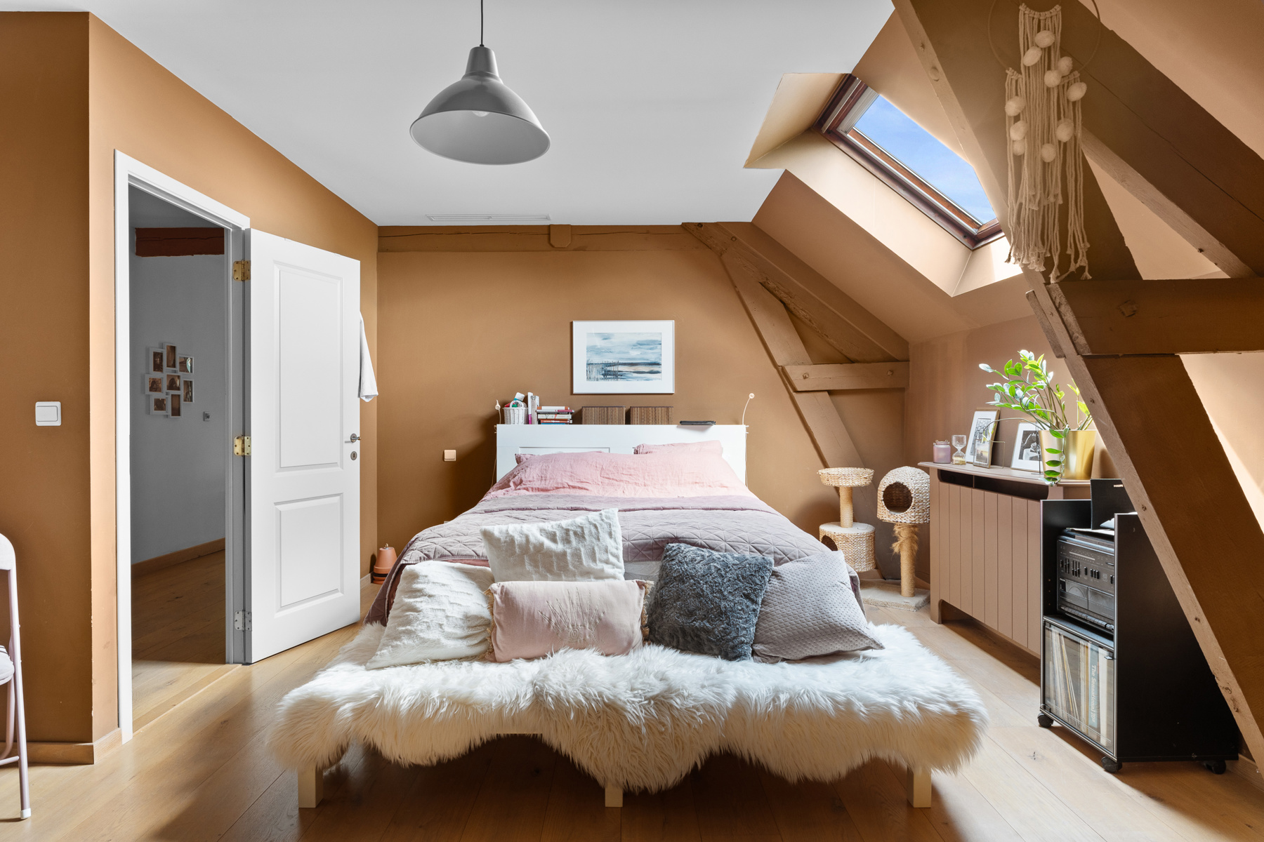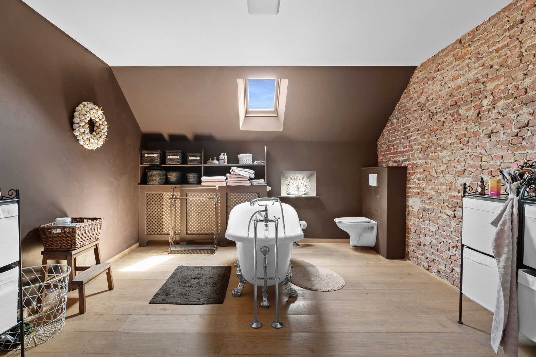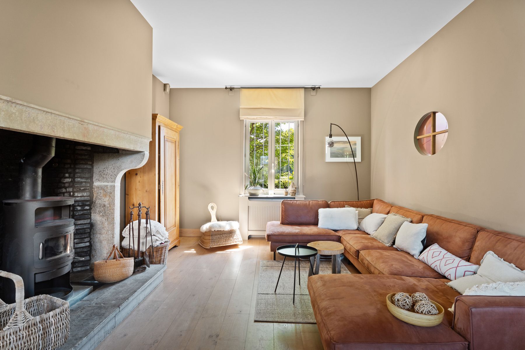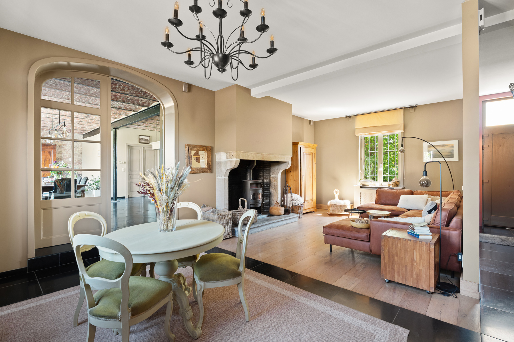 De ruime en lichtrijke leefruimtes ademen karakter. De pellet- en houtkachel zorgen voor een gezellige sfeer tijdens de wintermaanden. De woning is volledig ingericht in tijdloze “Flamand”-stijl, tot in de details uitgewerkt door een antiquair.