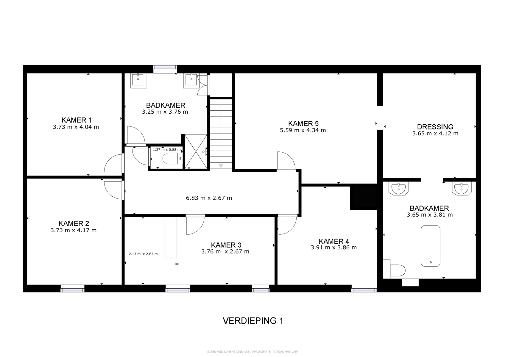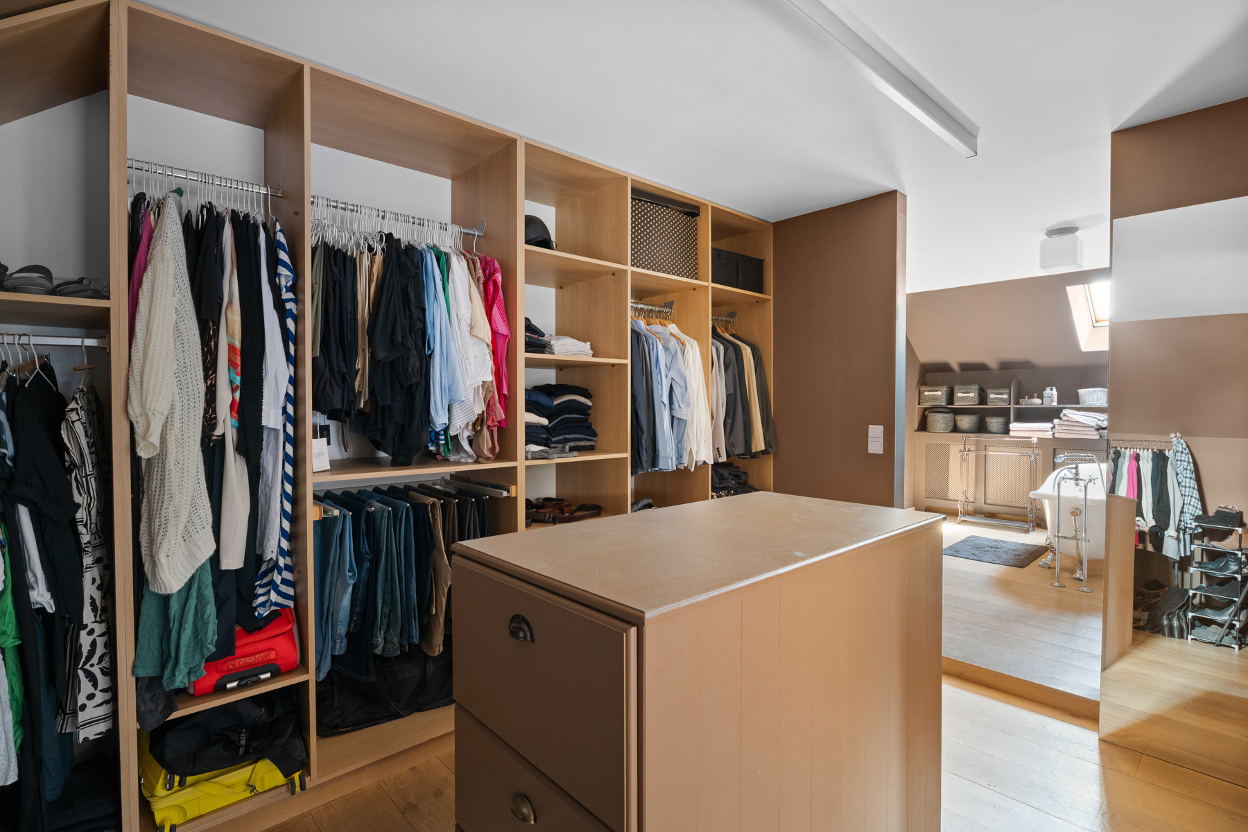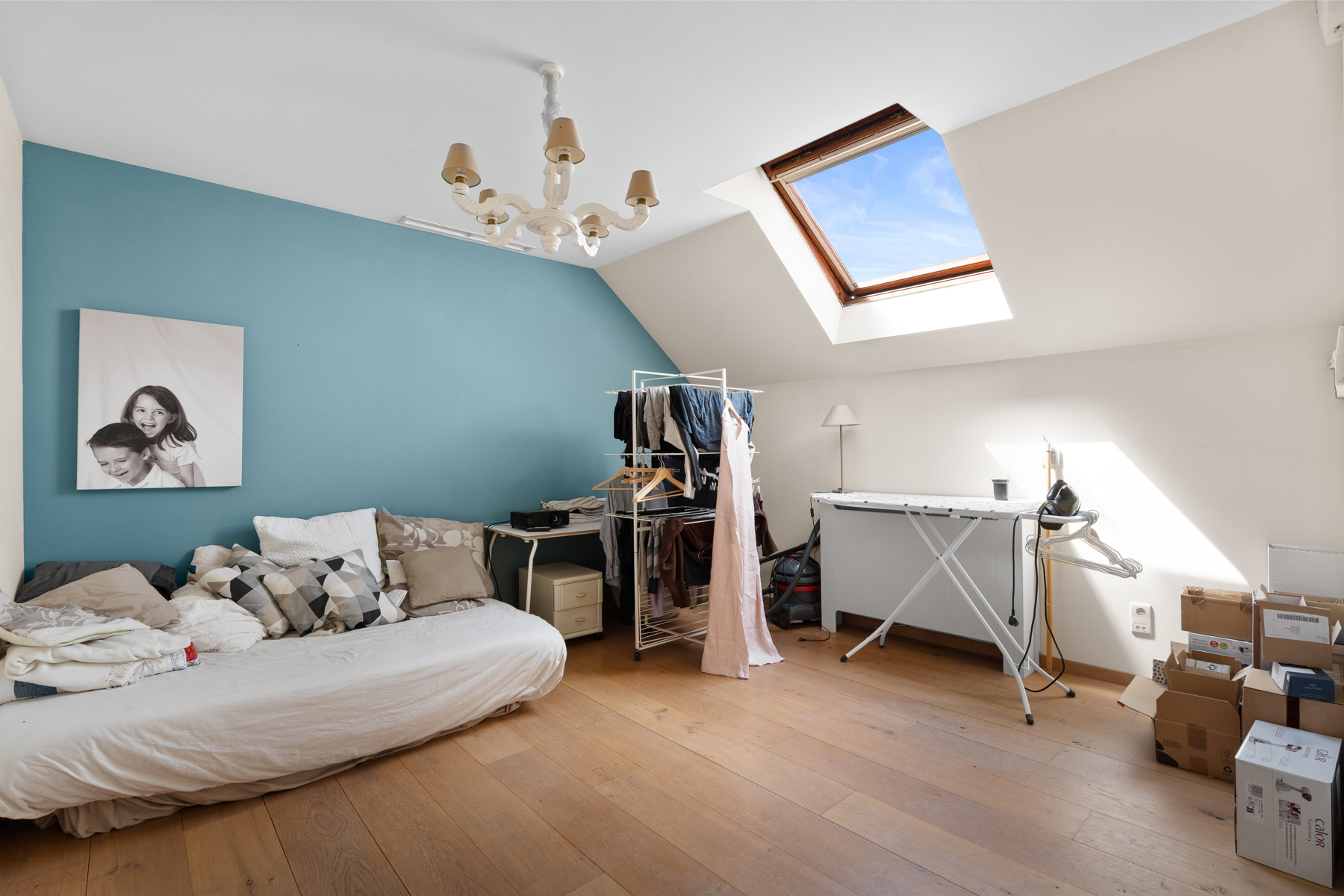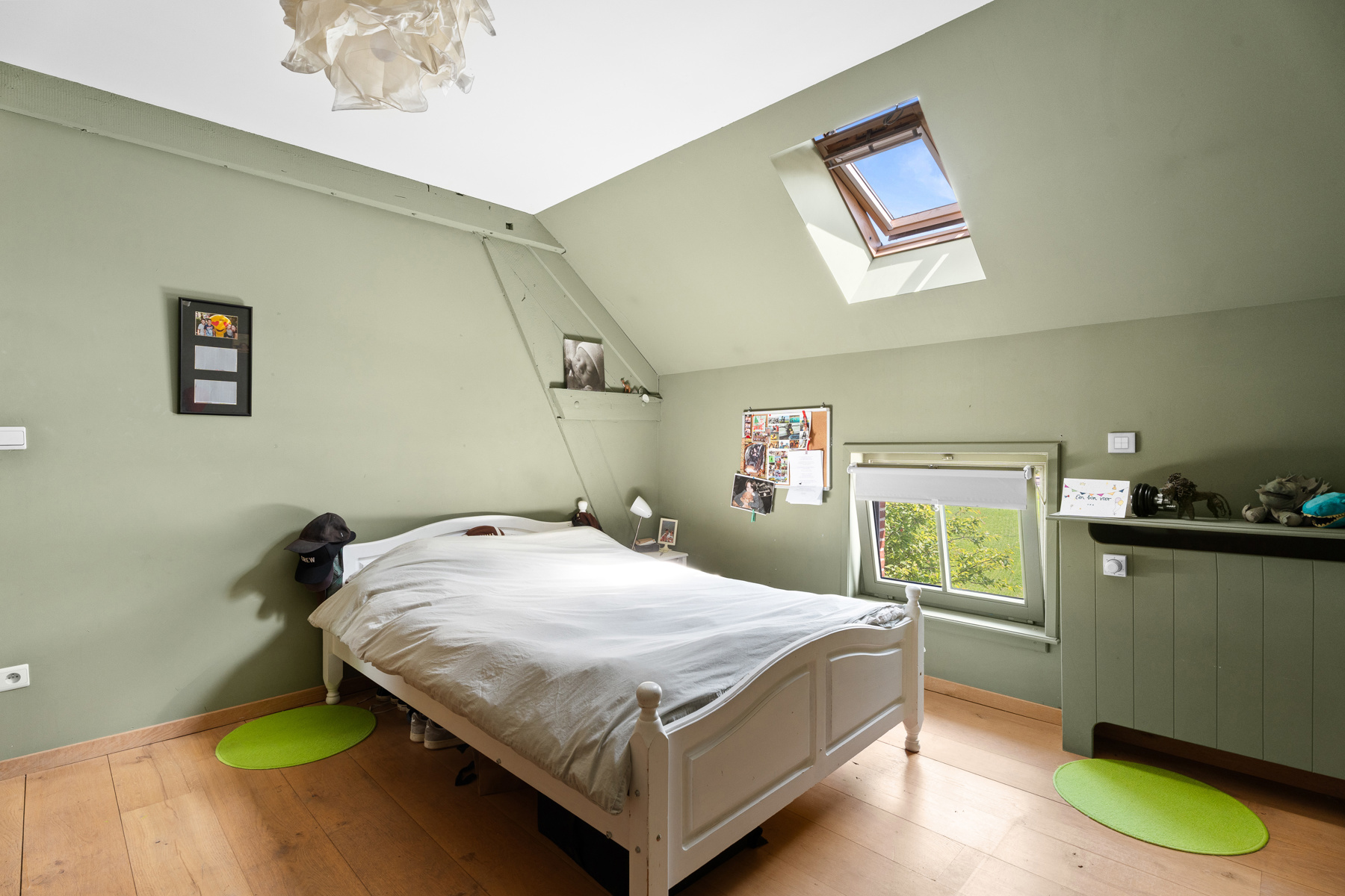 Gelijkvloers beschikt de woning over een zeer ruime bureauruimte van 27,8 m², ideaal voor vrij beroep of kantoor aan huis. Op de eerste verdieping tref je smaakvolle slaapkamers met parket, een masterbedroom met ensuite badkamer en royale dressing. De tweede badkamer kijkt uit op het zwembad – een unieke toets.