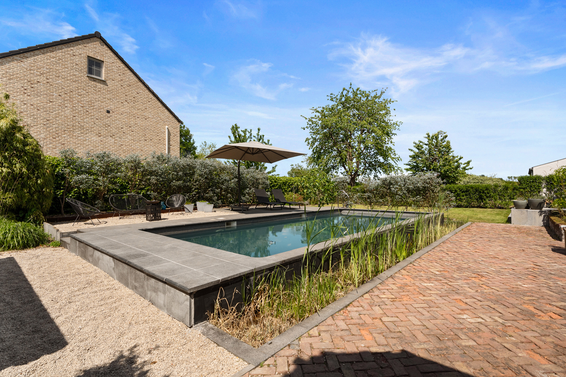 De zonnige, volledig aangelegde tuin biedt absolute rust en privacy. Geniet van meerdere terrassen, knusse hoekjes en een sfeervolle wijnkelder. Het verwarmde mozaïekzwembad met poolhouse tilt het buitenleven naar een hoger niveau – een plek om te ontspannen, te genieten en gasten in stijl te ontvangen.