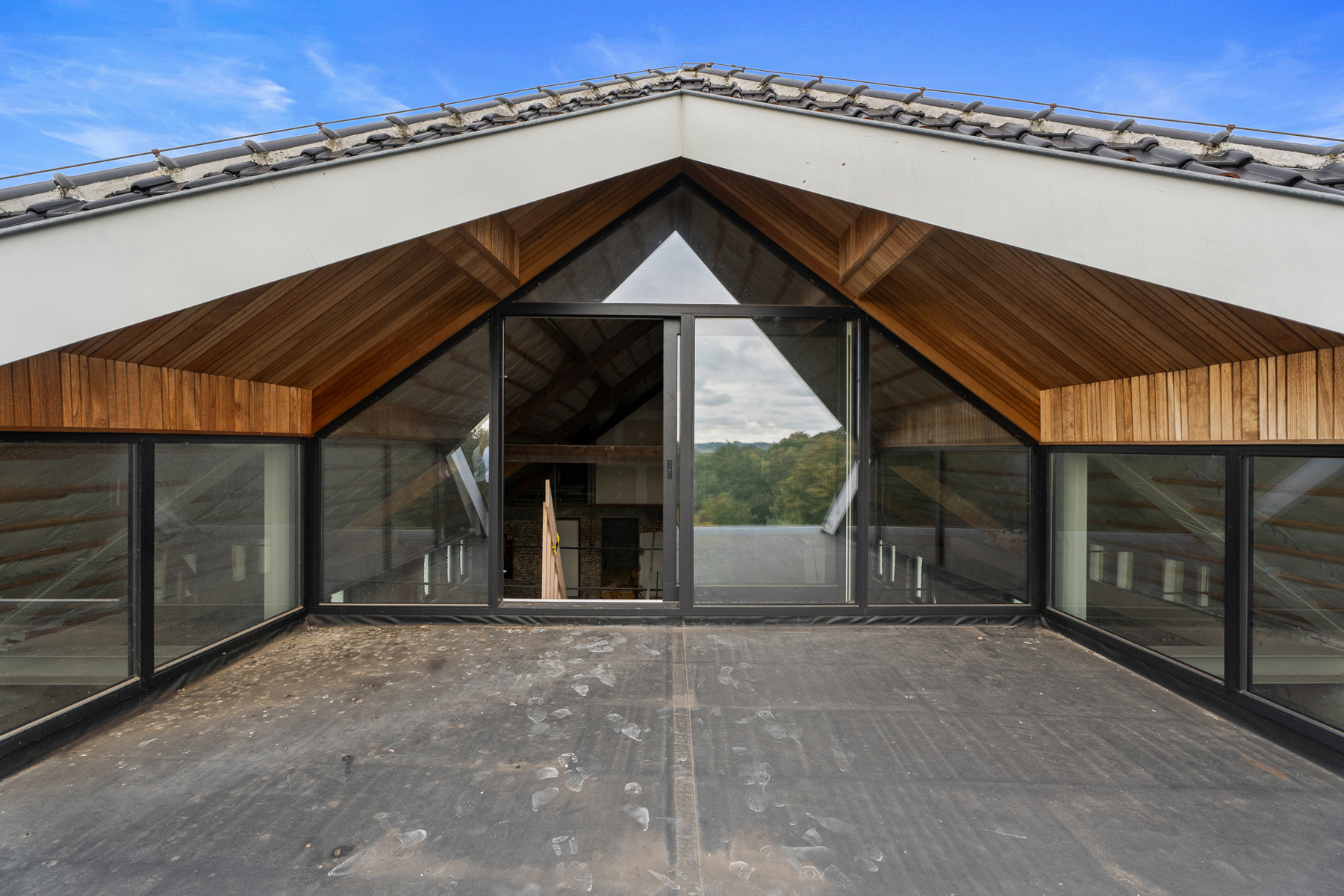 Het penthouse combineert de charme van het verleden met het comfort van vandaag. Zichtbare houten spanten, hoge plafonds en karaktervolle muren zorgen voor een authentieke sfeer. Dankzij de vele ramen baadt het interieur in licht en ontstaat een open gevoel van rust en ruimte.