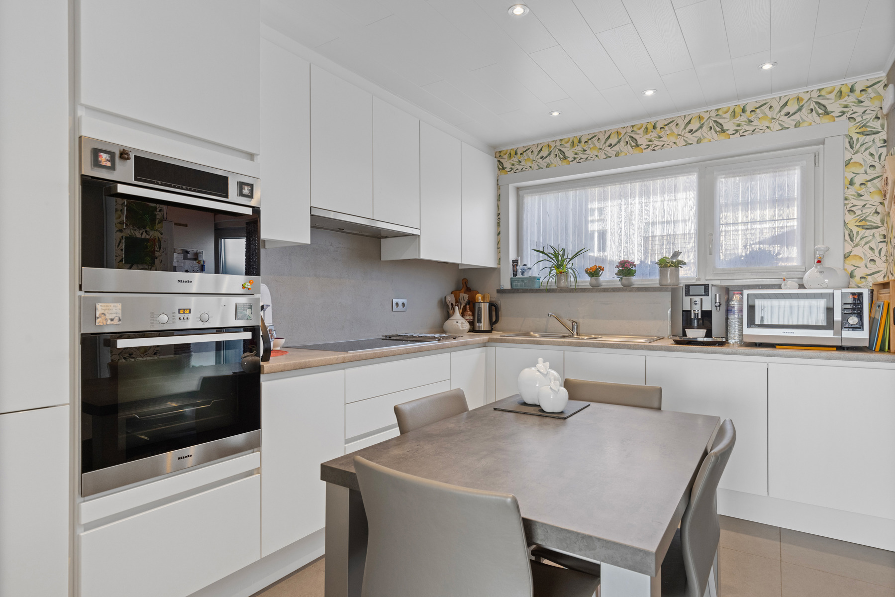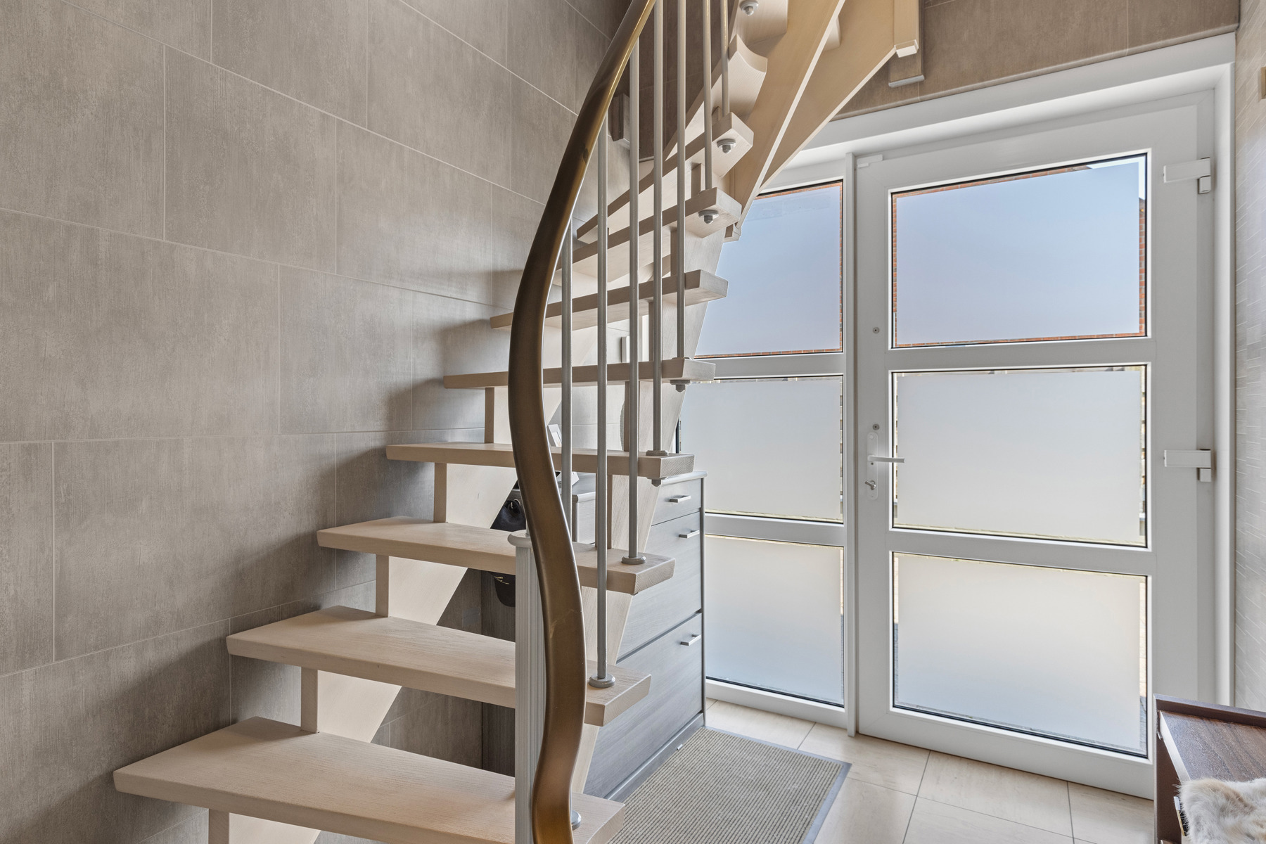 Met een bewoonbare oppervlakte van 164 m² op een westgericht perceel van 198 m² biedt deze woning verrassend veel ruimte. De royale L-vormige leefruimte met gezellige zithoek en eetplaats vloeit naadloos over in de volledig uitgeruste keuken, die uitkijkt op het zonneterras met loungehoek. De benedenverdieping beschikt verder over een ruime badkamer met bad/douchecombinatie, wastafel en toilet, een praktische wasplaats én een zeer ruime garage. Buiten zorgt de brede oprit voor extra parkeergelegenheid.